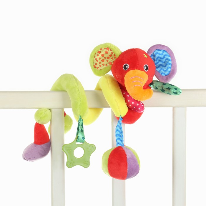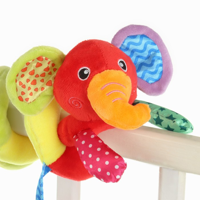 Растяжка - спираль с игрушками дуга на коляску / кроватку для малышей 0+ «Слоник яркий», Крошка Я