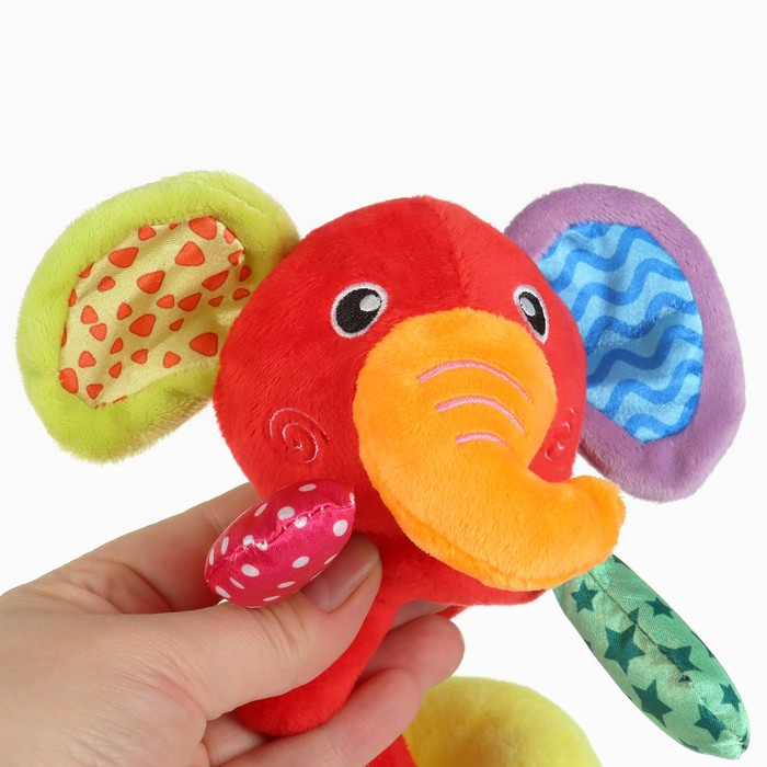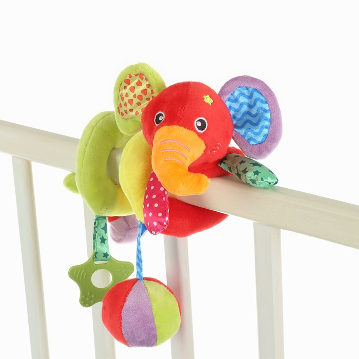 Растяжка на коляску/кроватку «Слоник», 3 игрушки с погремушками, цвет МИКС, Крошка Я