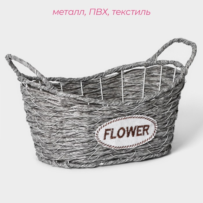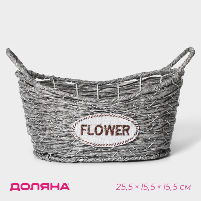 Кашпо плетёное Доляна «Луция», 25,5×15,5×15,5 см, корзинка, цвет серый