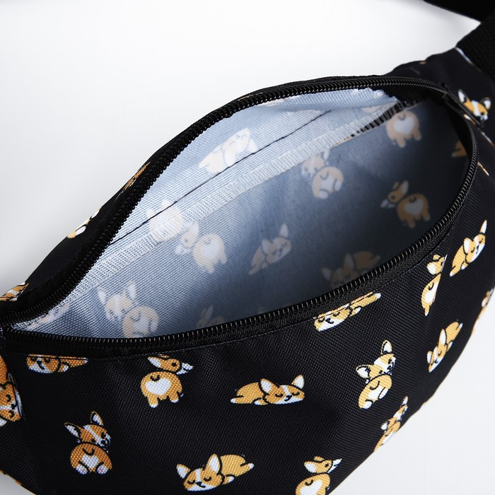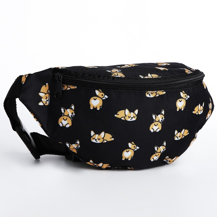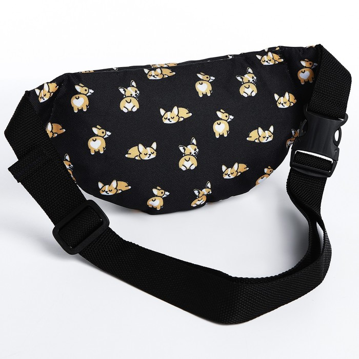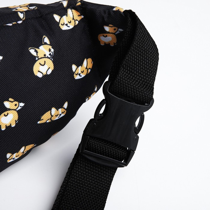 Сумка поясная «Корги», 32х8х15 см, отдел на молнии, наружный карман, цвет чёрный