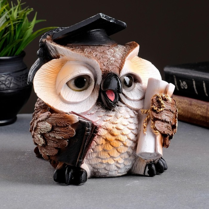Фигура "Сова ученая" коричневая, 18х17х19см