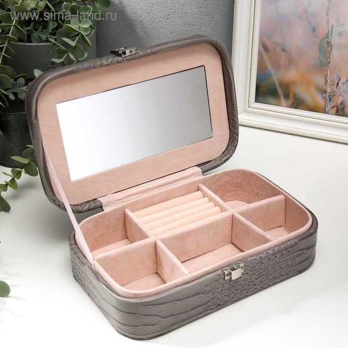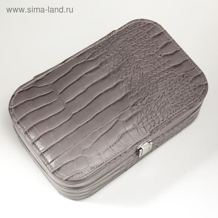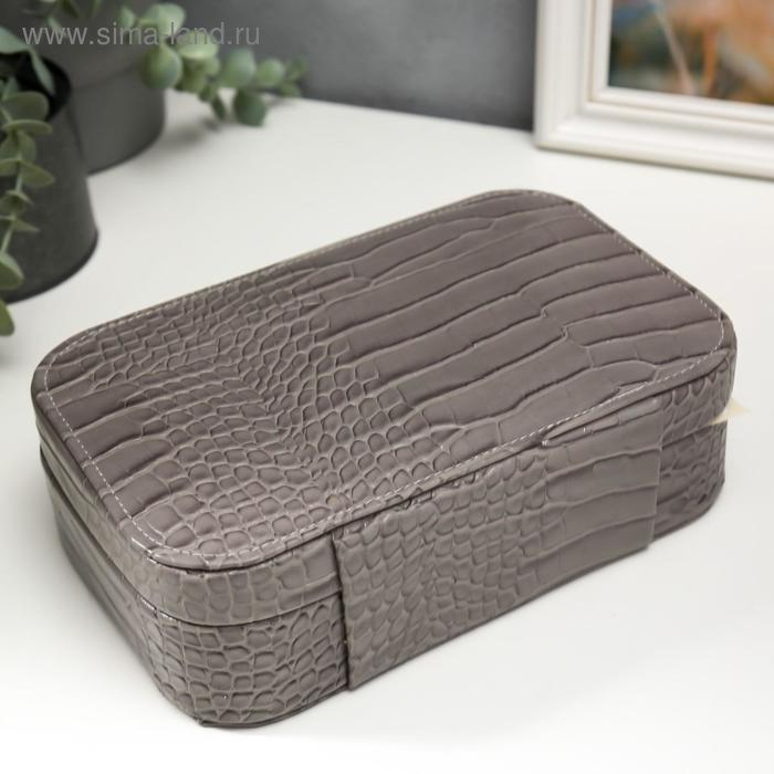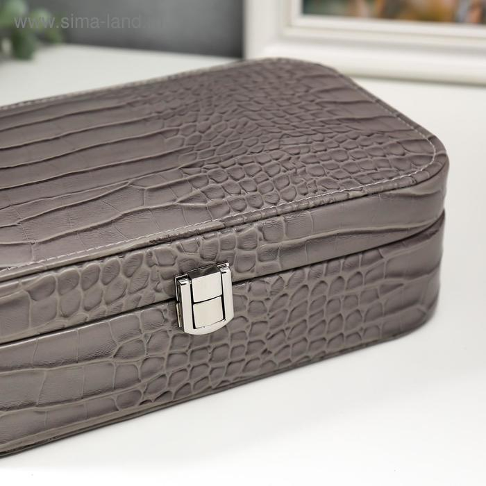 Шкатулка кожзам для украшений "Кожа питона" серая матовая 7х22,5х14,5 см