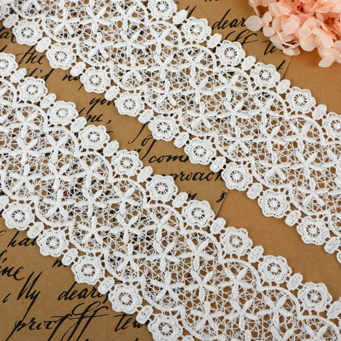 Кружево гипюровое, 45 мм × 9 ± 0,5 м, цвет белый