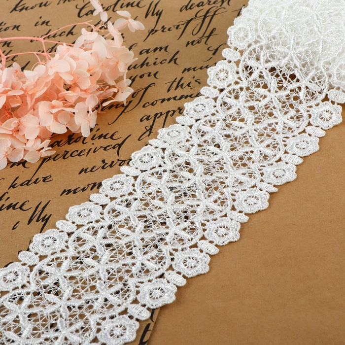 Кружево гипюровое, 80 мм × 6,8 ± 0,5 м, цвет белый