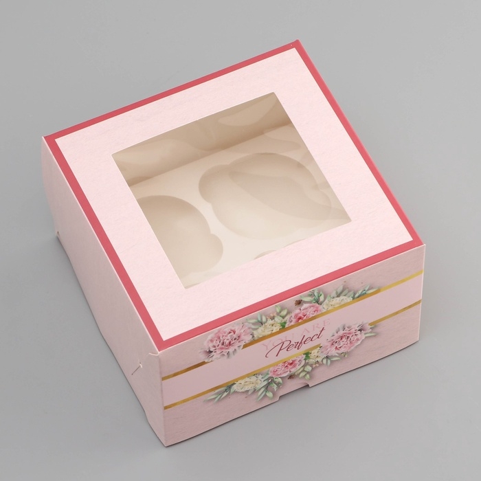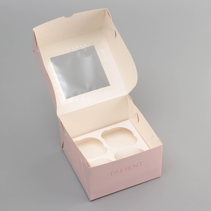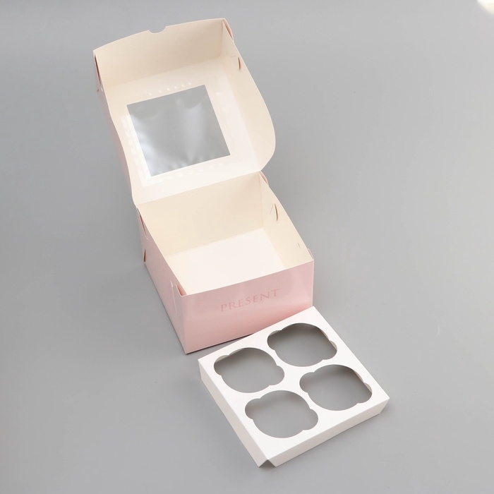 Коробка под 4 капкейка с окном , "Прекрасной", 16 х 16 х 10 см, кондитерская упаковка