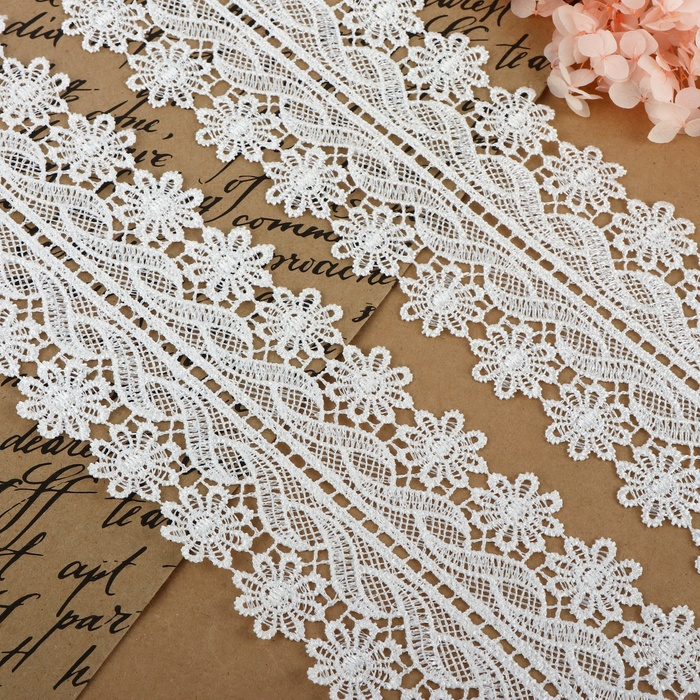 Кружево гипюровое, 45 мм × 9 ± 0,5 м, цвет белый