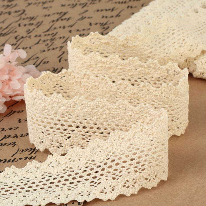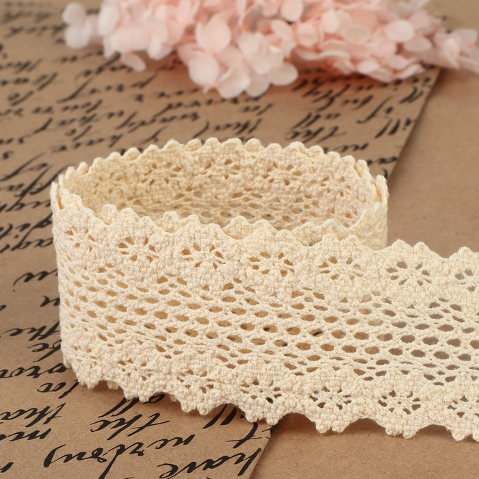Кружево вязаное, 45 мм × 10 ± 1 м, цвет бежевый