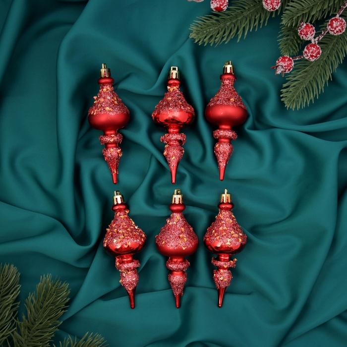 Ёлочная игрушка "Сосульки фигурные блеск" (набор 6 шт) 4х11 см, красный