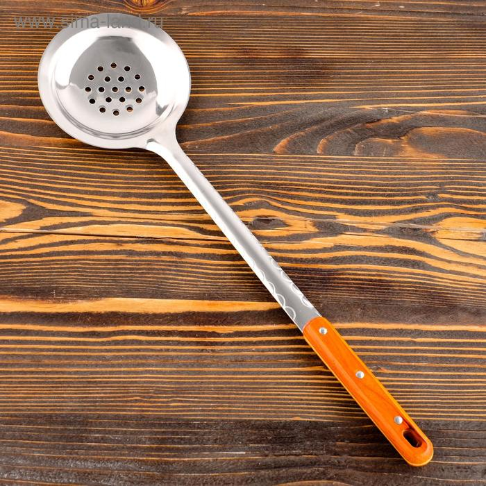 Шумовка для казана узбекская 45см, диаметр 12см, с деревянной ручкой