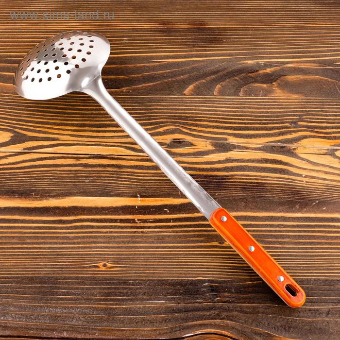 Шумовка для казана узбекская 43см, диаметр 12см, с деревянной ручкой