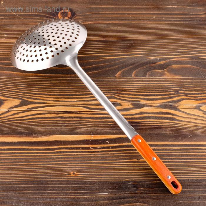 Шумовка для казана узбекская 48см, диаметр 17см, с деревянной ручкой