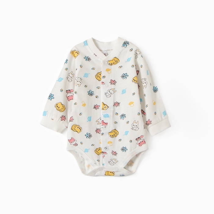 Боди детское с длинным рукавом, цвет экру/ЗВЕРИ, рост 74-80 см