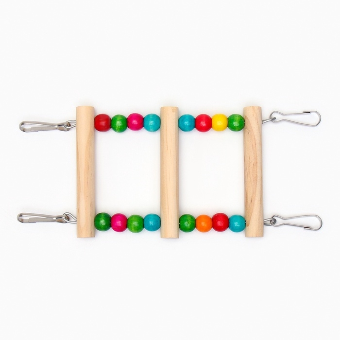 Игрушка для птиц "Лесенка с бусинами" 3 ступени, 23 см, микс цветов