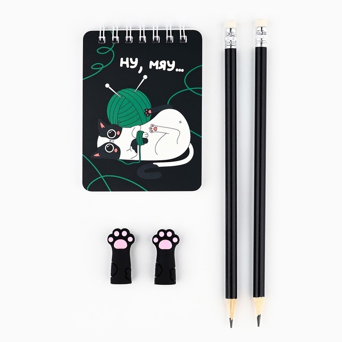 Подарочный набор "Настоящая котомания", карандаши 2 шт, ластики 2 шт, блокнот