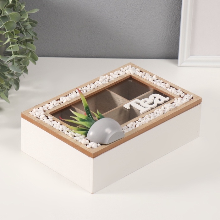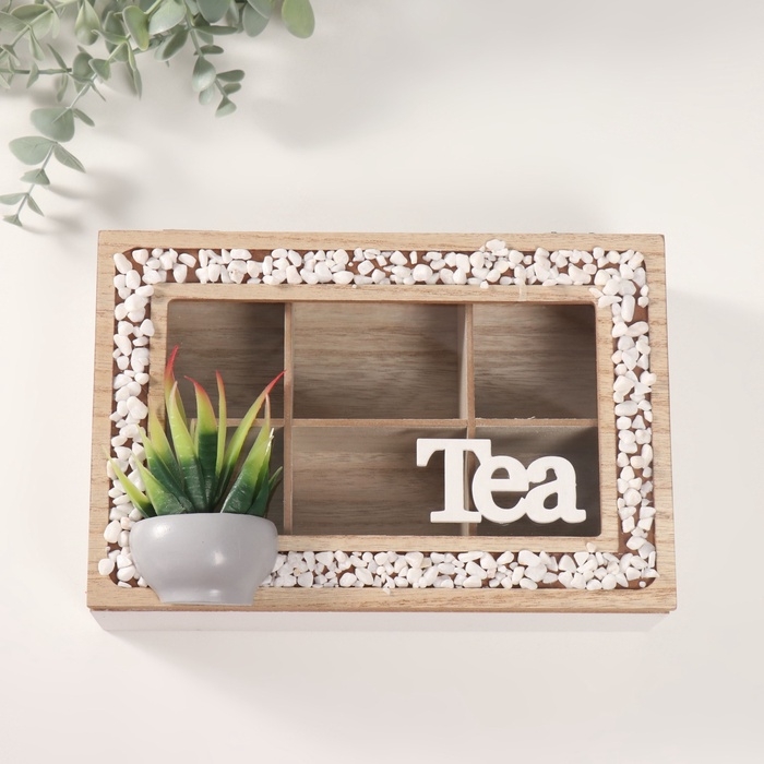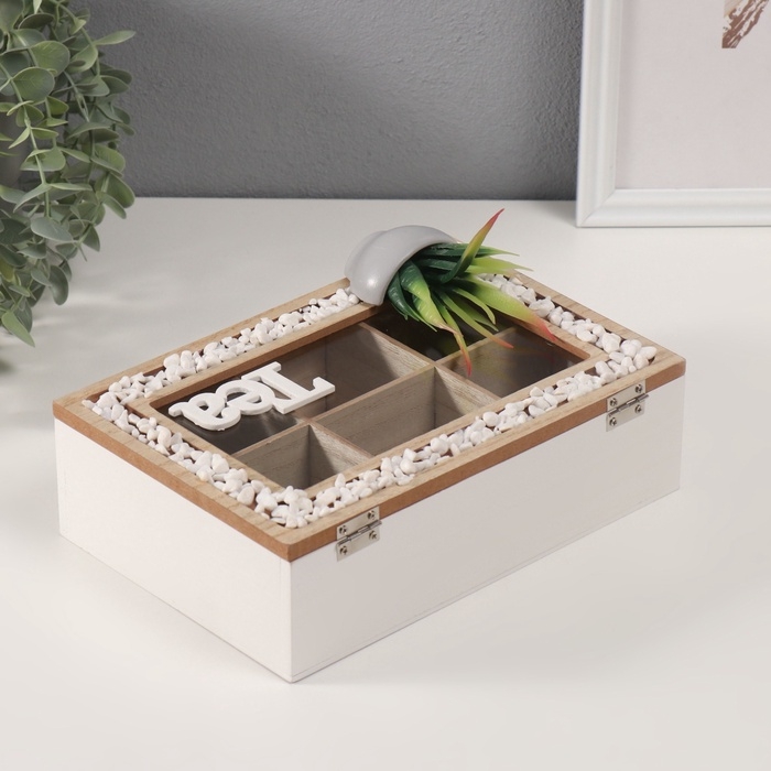 Шкатулка дерево с делениями "Чай. Кактус в горшочке" 16х23,5х9,5 см
