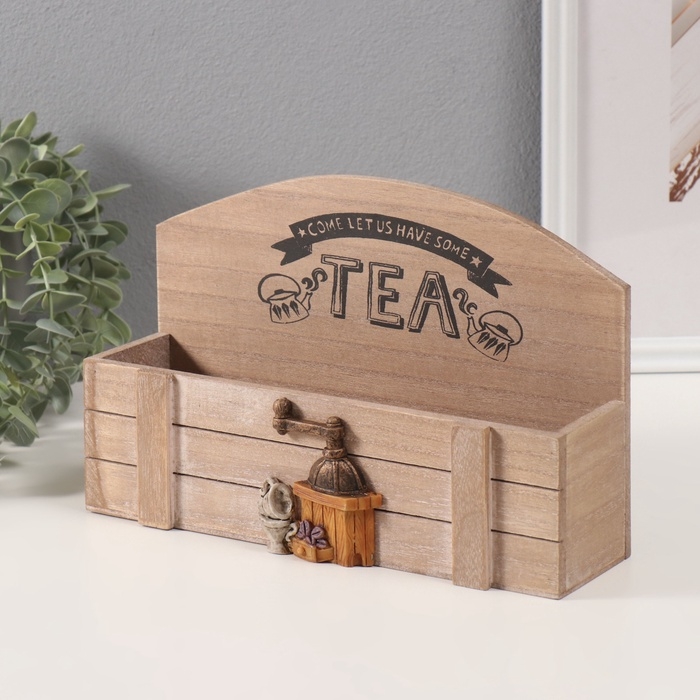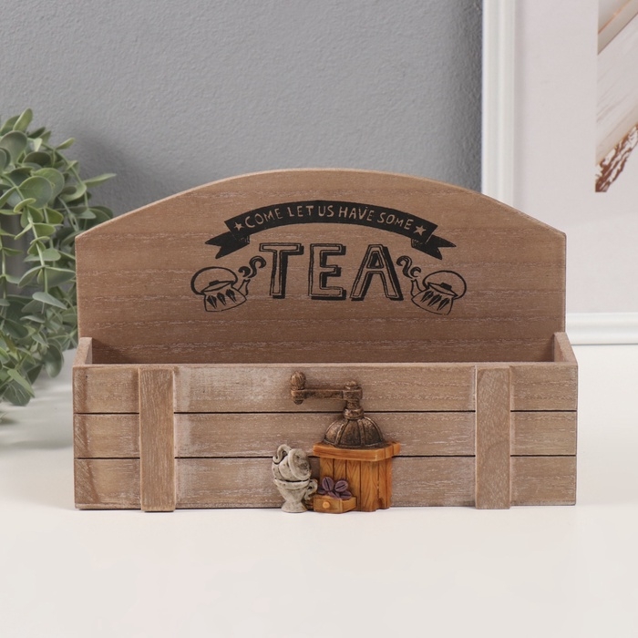 Шкатулка дерево с делениями "Чай и набор для варки кофе" 7х26,5х17 см