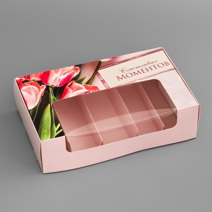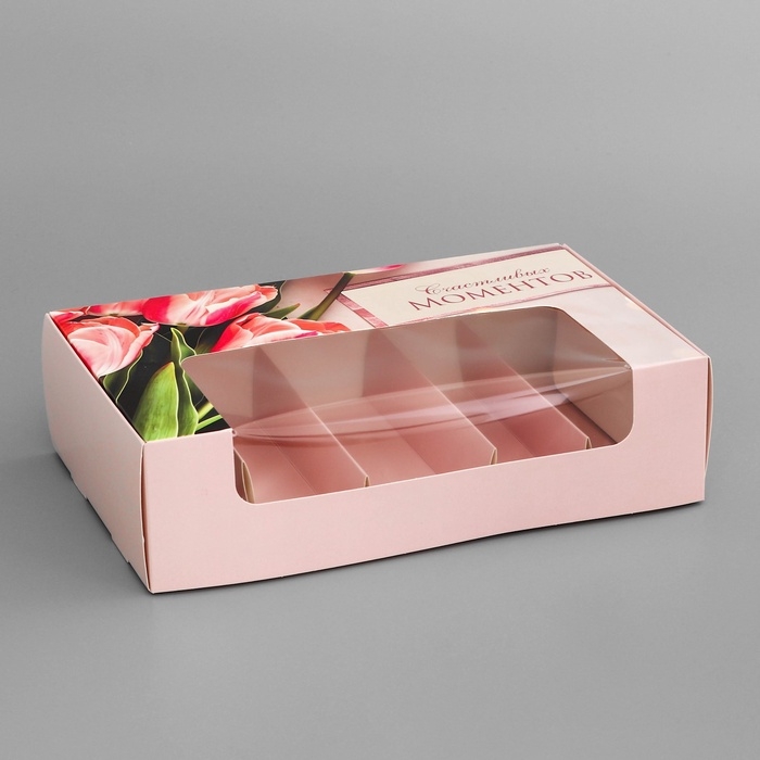 Коробка под 5 эклеров , кондитерская упаковка "Счастливых моментов", 25,2 х 15 х 6,6 см