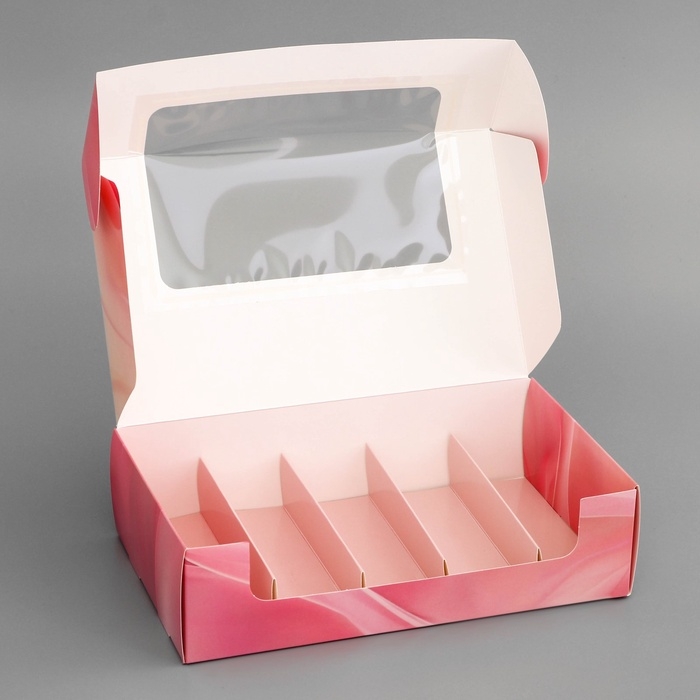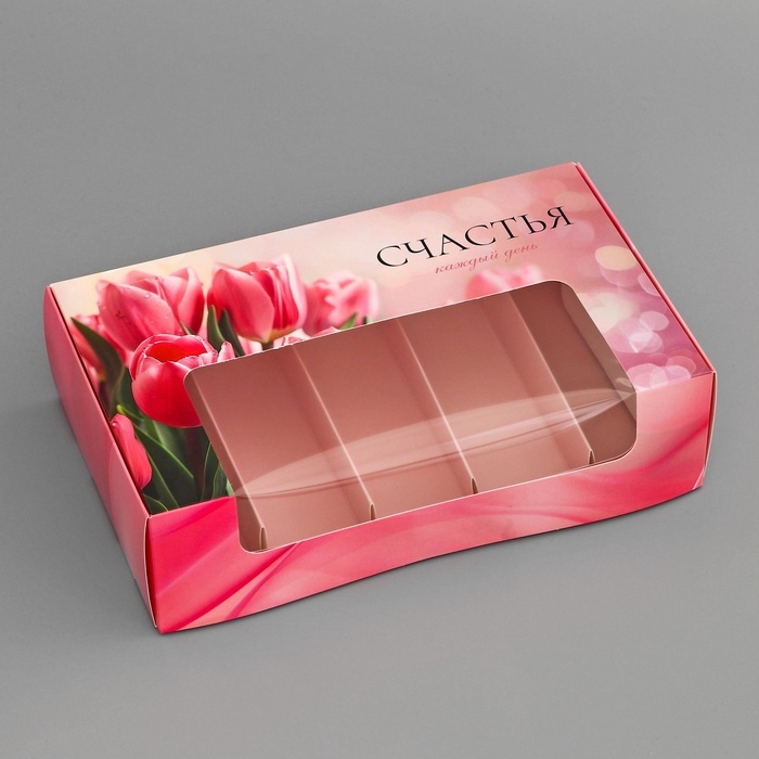 Коробка под 5 эклеров , кондитерская упаковка "Тюльпаны", 25,2 х 15 х 6,6 см