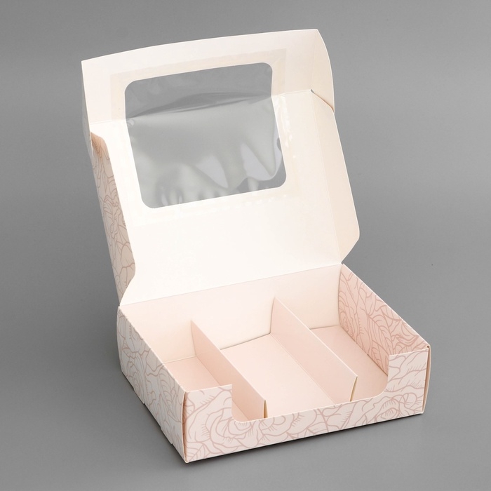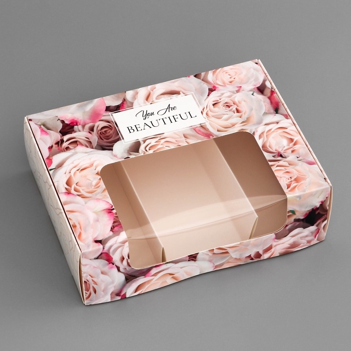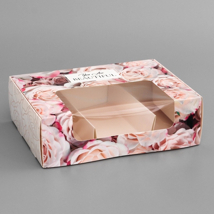 Коробка складная, под 3 эклера, кондитерская упаковка "Ты прекрасна", 20 х 15 х 6 см