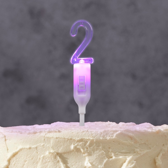 Светодиодная свеча "Цифра 2", 14.5 см, от батареек LR1130х3 (в комплекте), свечение мульти (RGB)