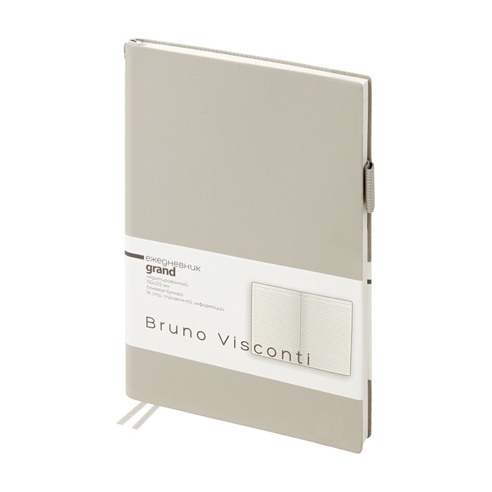 Ежедневник недатированный А5, 128 листов GRAND, интегральная обложка из искусственной кожи, ляссе, кремовый блок 70 г/м2, серый