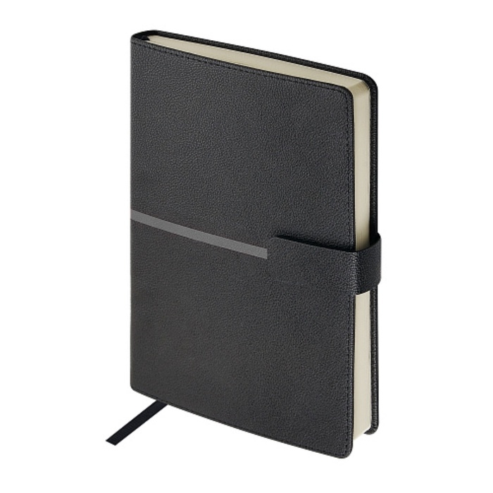 Ежедневник недатированный А5, 136 листов LYON, твердая обложка из искусственной кожи, магнитный хлястик, ляссе, кремовый блок 70 г/м2, чёрный