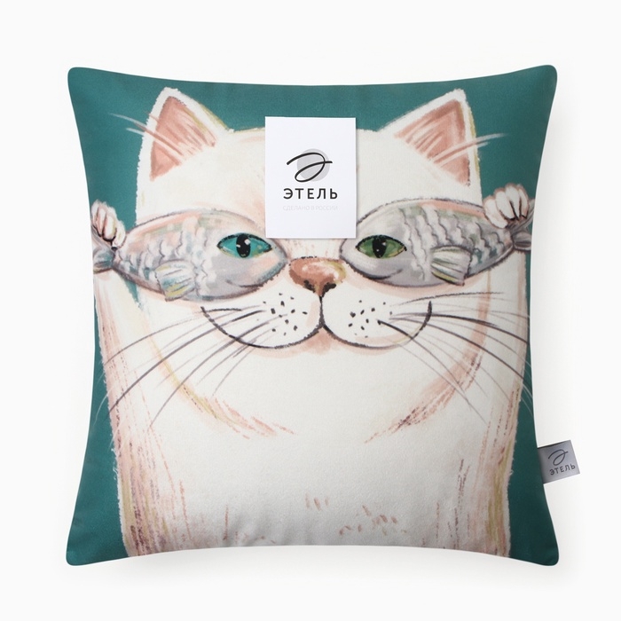 Подушка Этель "Счастливый котик" 40х40 см, велюр, 100% п/э