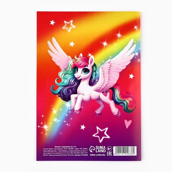 Блокнот с заданиями А5, 12 л "Единорог"