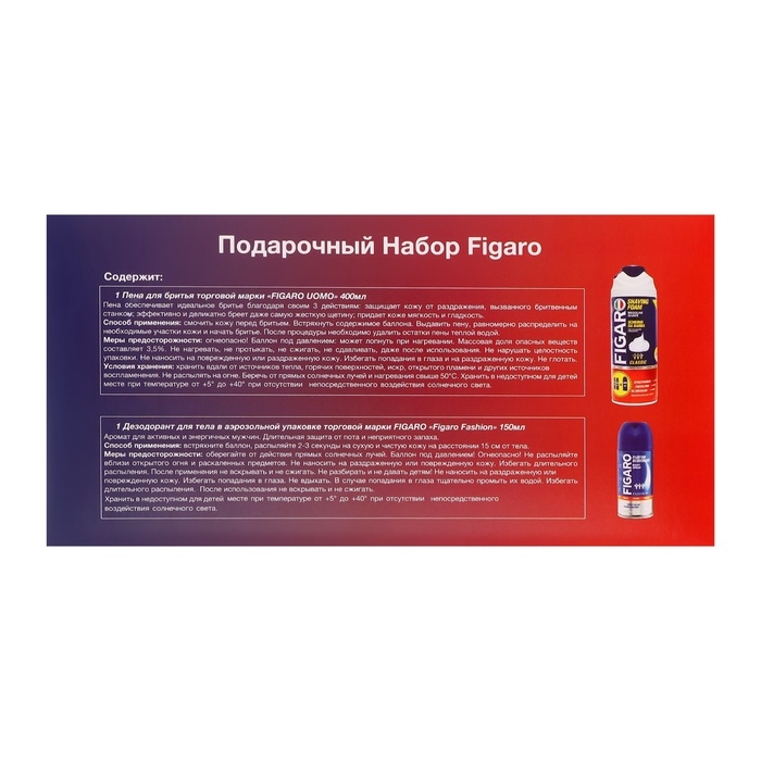 Подарочный набор Figaro для мужчин включает пену для бритья Figaro объёмом 400 мл и дезодорант 150 мл. Этот набор станет отличным презентом для любого представителя сильного пола.