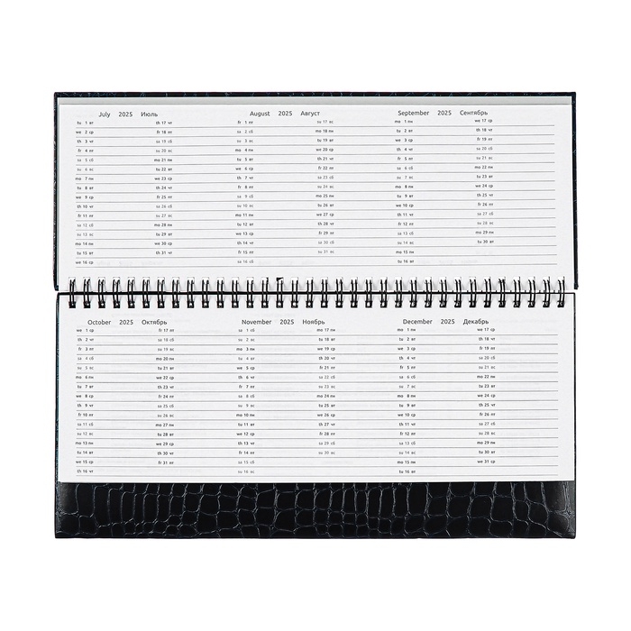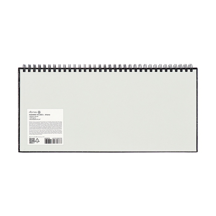 Планинг датированный 2025 года, 64 листа, Attomex. Arkona, твердая обложка бумвинил с поролоном, блок 70 г/м2, чёрный, 294 х 142мм