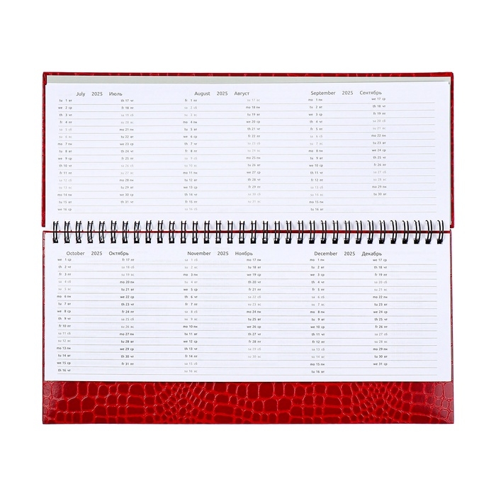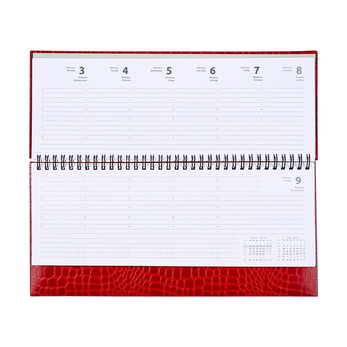 Планинг датированный 2025 года, Attomex. Arkona, 64 листа, твердая обложка бумвинил с поролоном, блок 70 г/м2, красный, 294 х 142мм