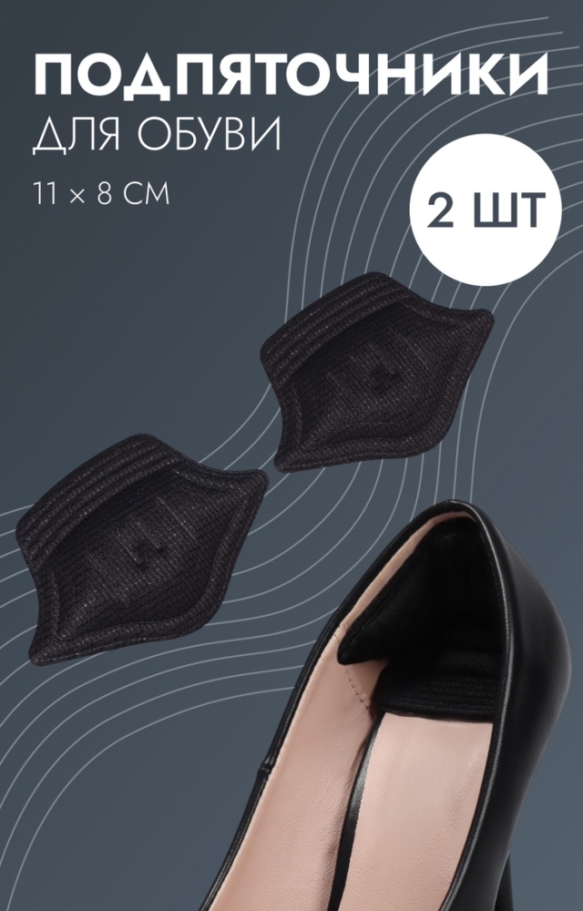 Подпяточники для обуви, на клеевой основе, 11 × 8 см, пара, цвет чёрный