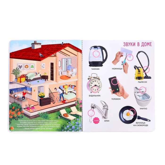 - На каждом развороте нажмите кнопку «НАЖМИ» для активации звуков на странице.