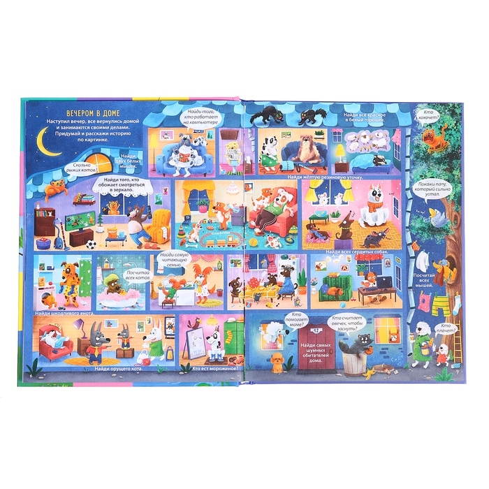 Начинать разглядывать картинки виммельбуха можно уже с года. А с трёх лет ребёнку будет интересно с ним играть и выполнять задания.