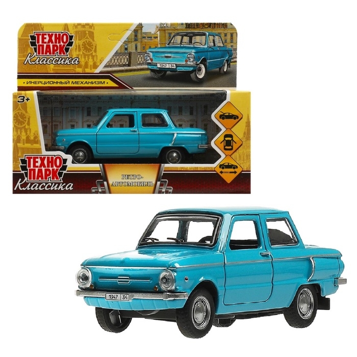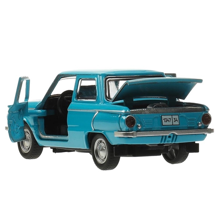 Машинка металлическая «ЗАЗ-968А», ретро - модель «Запорожец», открываются двери, багажник, инерция, 12 см голубой