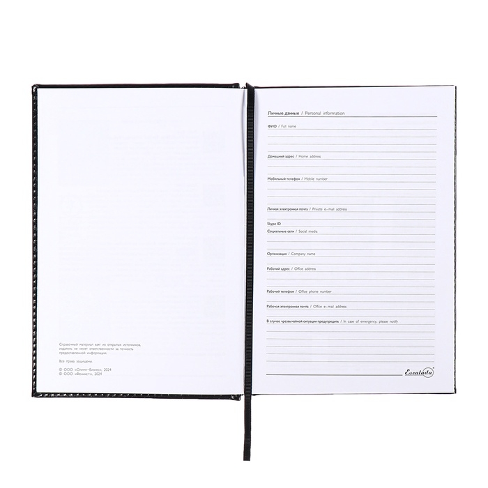 Ежедневник недатир А5 160л ESCALADA, тв обл/пор, иск кож, бл тис, ляс, бл 70г/м2, чёрный