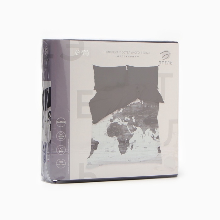 Постельное бельё "Этель" 2 сп Geography 175*215 см, 200*220 см, 50*70 см -2 шт, поплин 125 г/м2, хл 100%