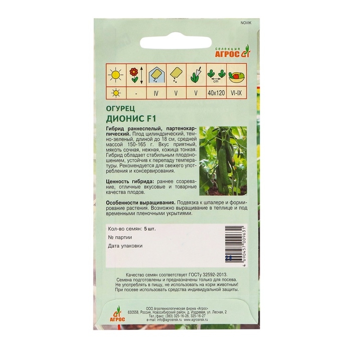 Семена Огурец"Дионис"F1 5шт* Селекция Агрос
