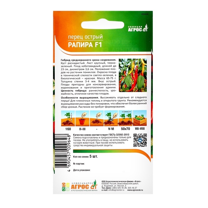 Семена Перец острый"Рапира"F1 5шт* Селекция Агрос