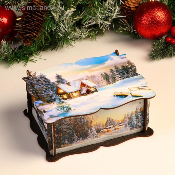Шкатулка большая новогодняя "Дом на опушке", микс, 20х15х8,5 см