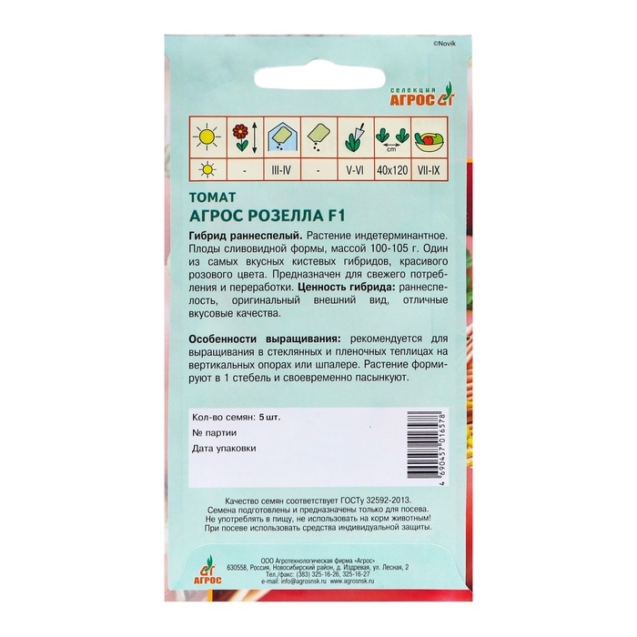 Семена Томат"Агрос Розелла"F1 5шт* Селекция Агрос