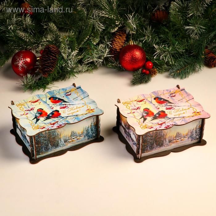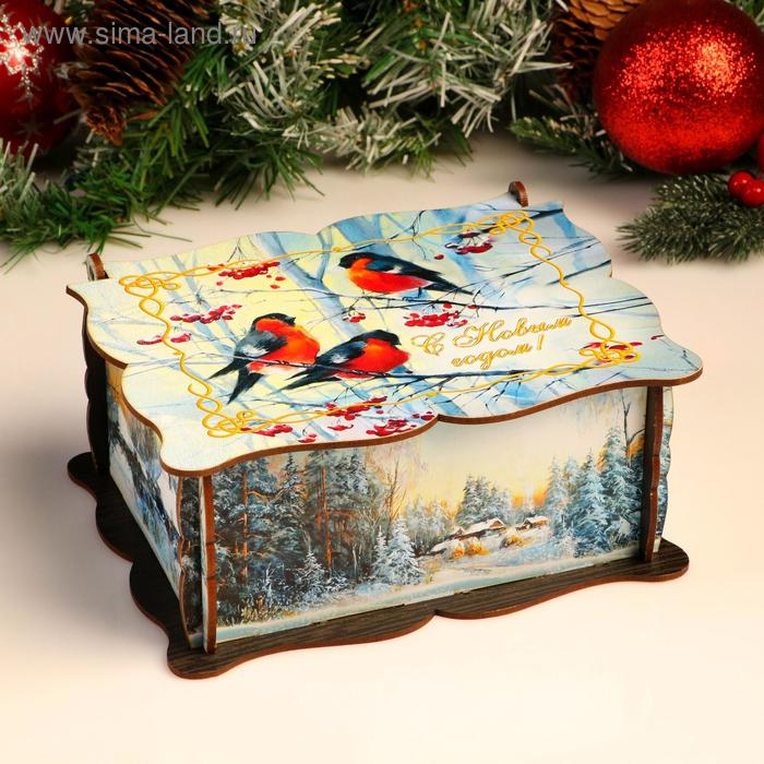 Шкатулка большая новогодняя "Снегири. С Новым годом!", микс, 20х15х8,5 см