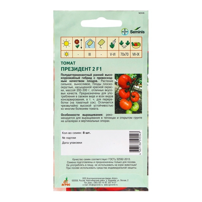 Семена Томат"ПрезидентII"F1 8шт* Seminis