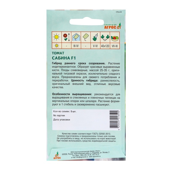 Семена Томат"Сабина"F1 5шт* Селекция Агрос
