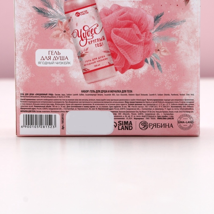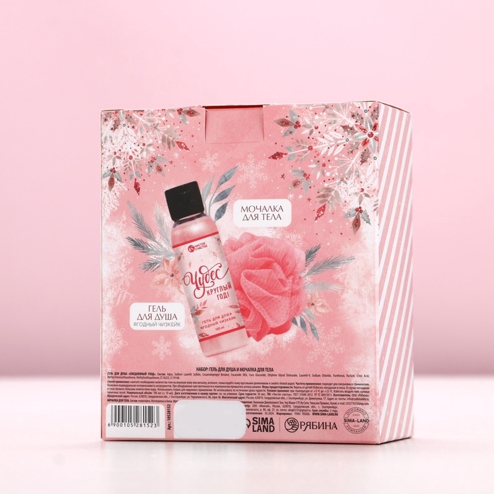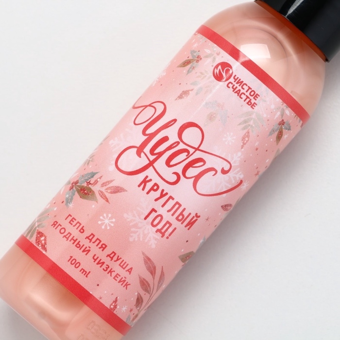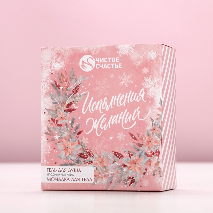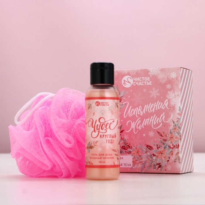 Подарочный набор ЧИСТОЕ СЧАСТЬЕ «Исполнения желаний»: гель для душа 100 мл и мочалка для тела, Новый Год