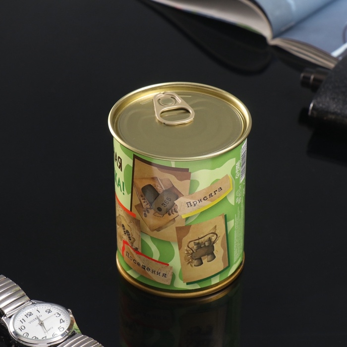 Носки в банке "Стальная выдержка!" (внутри носки мужские, цвет чёрный)