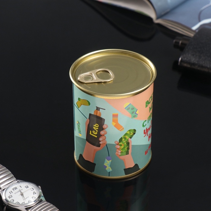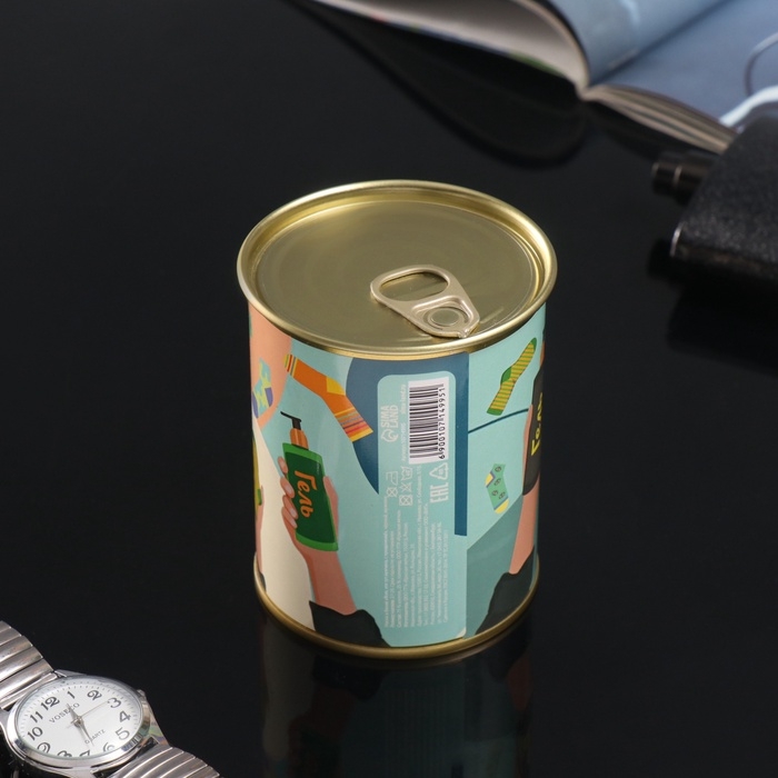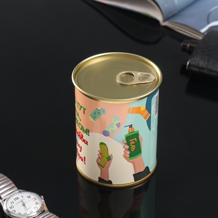 Носки в банке "Всем, кто тут мужчина, с праздником!" (внутри носки мужские, цвет чёрный)