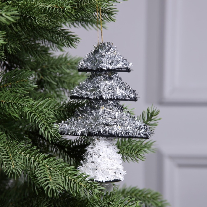 Фигура из мишуры "Елочка серебристая" 17х13 см, 10 LED, AG10х3 (в компл), Т/БЕЛЫЙ