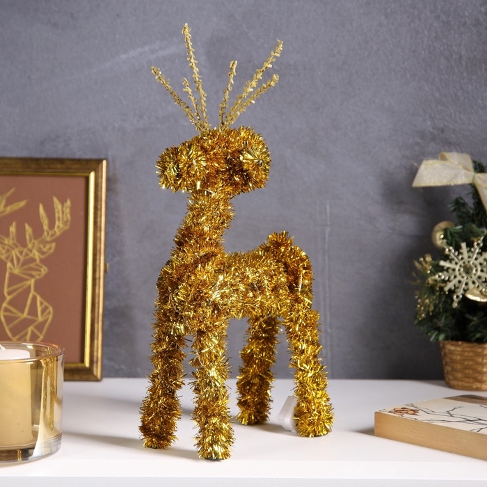 Фигура из мишуры "Олень золотистый" 34х16 см, 20 LED, AG10х3 (в компл), Т/БЕЛЫЙ