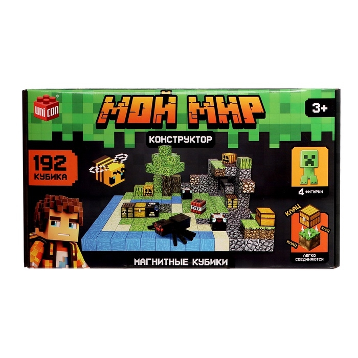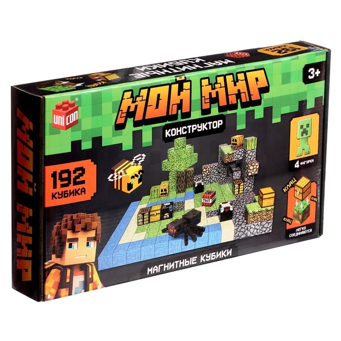 Конструктор UNICON «Магнитные кубики. Мой мир», 2 фигурки, 192 детали
